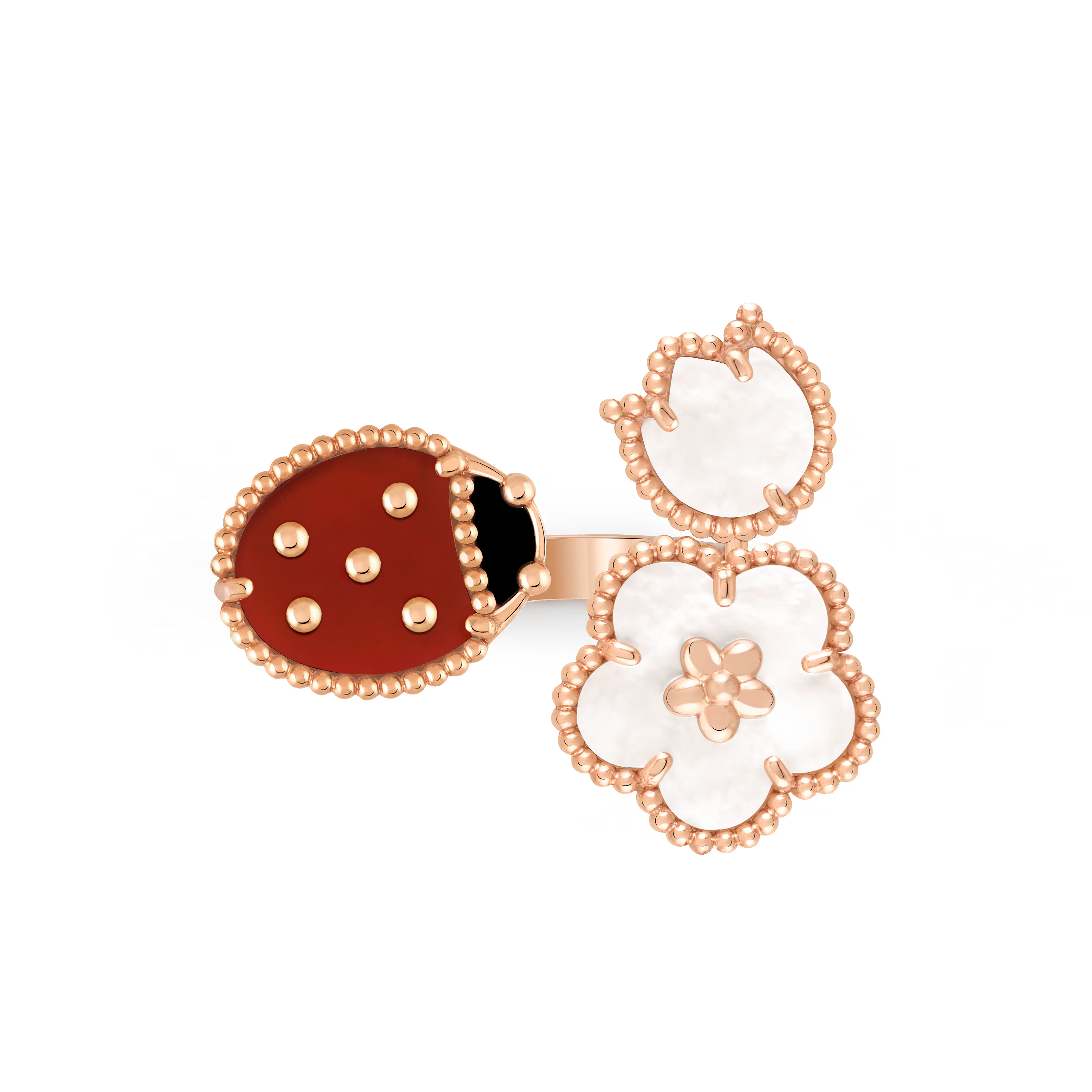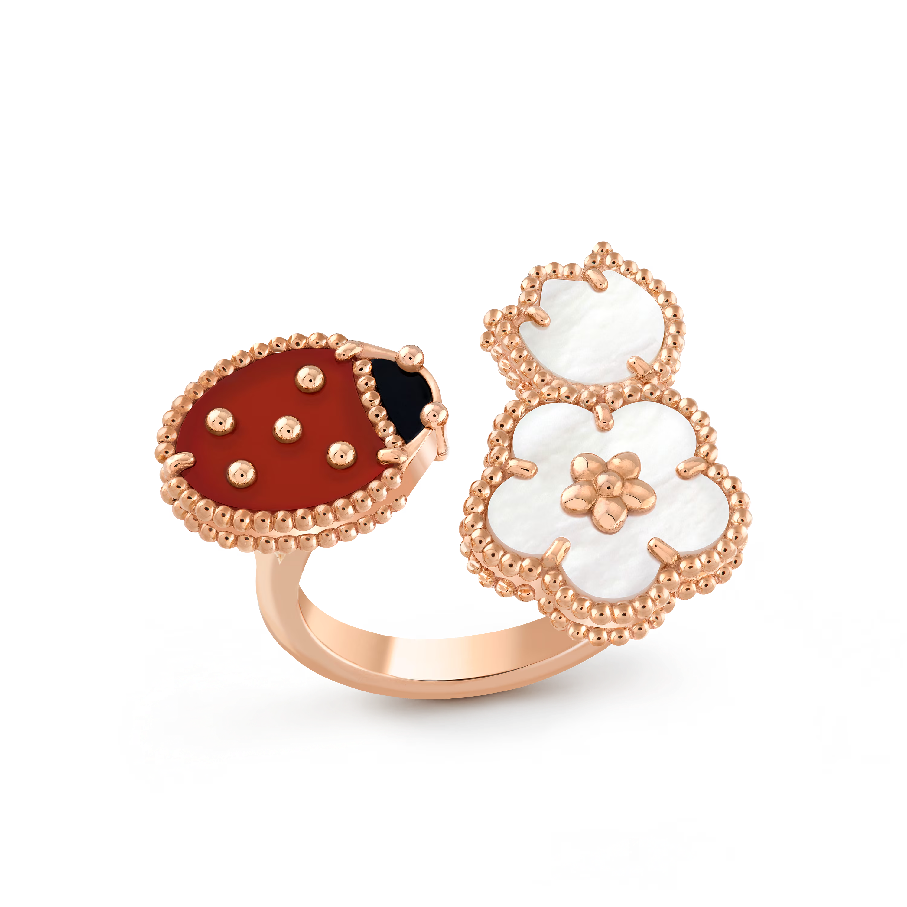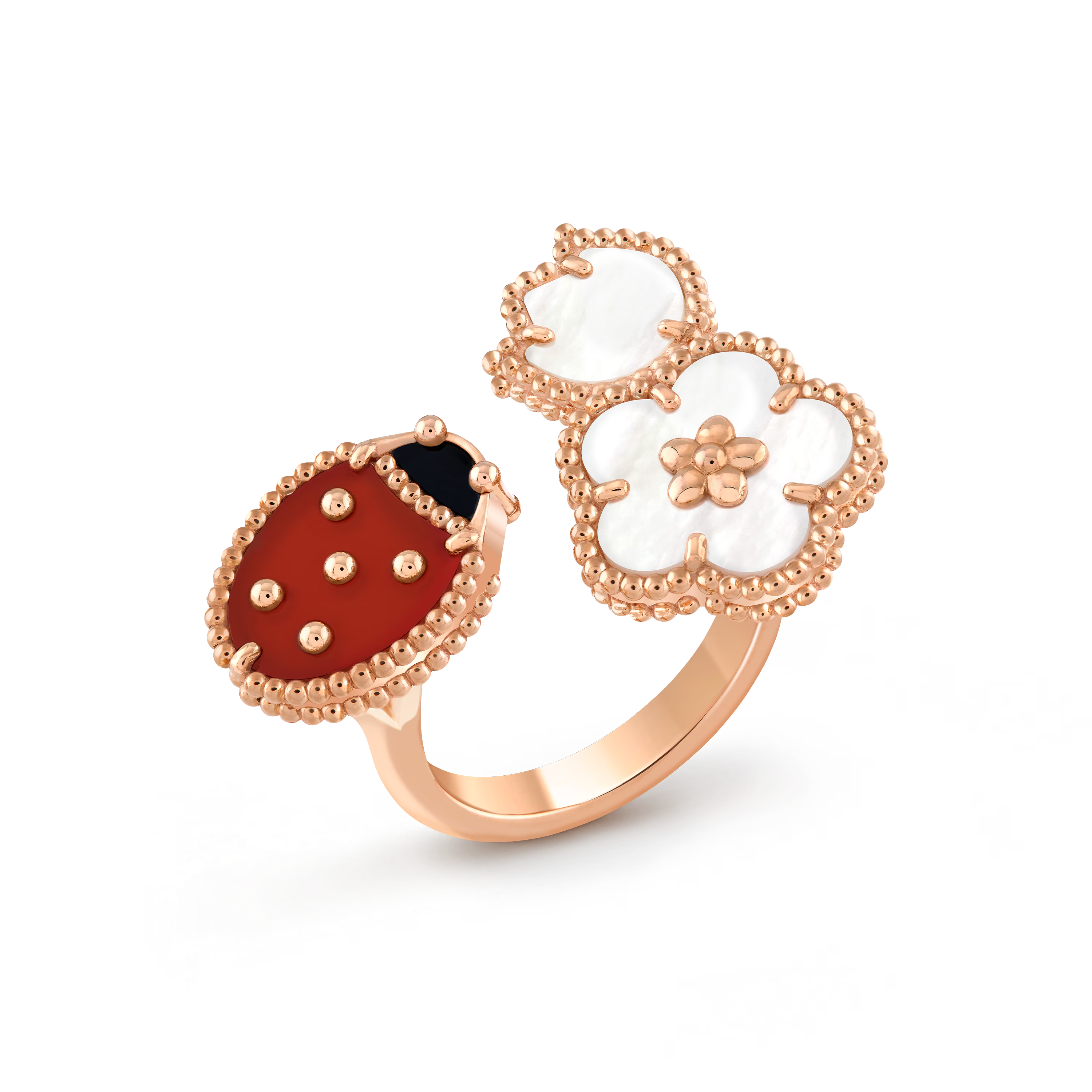 Symbole lumineux de beauté, de chance et de renouveau, cette bague séduira les amateurs de créations empreintes de poésie, d’élégance et de l’esprit joyeux propre à Van Cleef & Arpels.