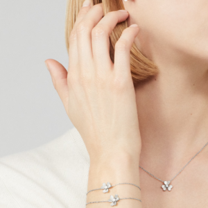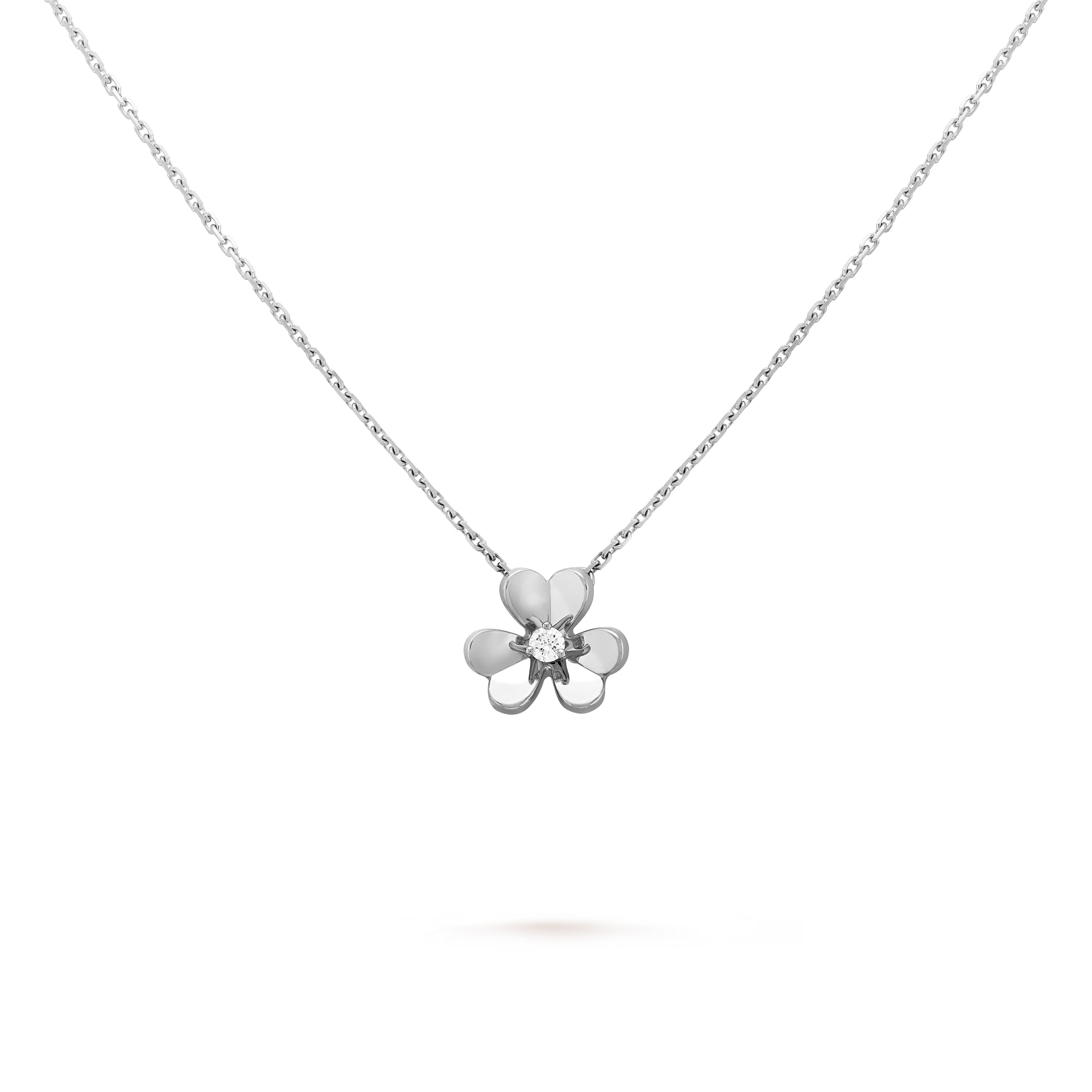 Un Rayonnement Délicat en Fleur Le pendentif Frivole, modèle mini, capture l’essence gracieuse d’une fleur pleinement épanouie. Réalisé avec légèreté et raffinement, cette création lumineuse reflète l’interprétation poétique de la Maison de la délicate beauté de la nature.