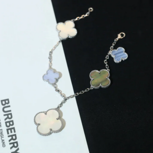 Chaque motif est réalisé dans une taille distincte, créant un équilibre gracieux entre délicatesse et présence. Cette variation apporte un rythme visuel au bracelet, permettant à chaque motif de briller à sa manière unique.