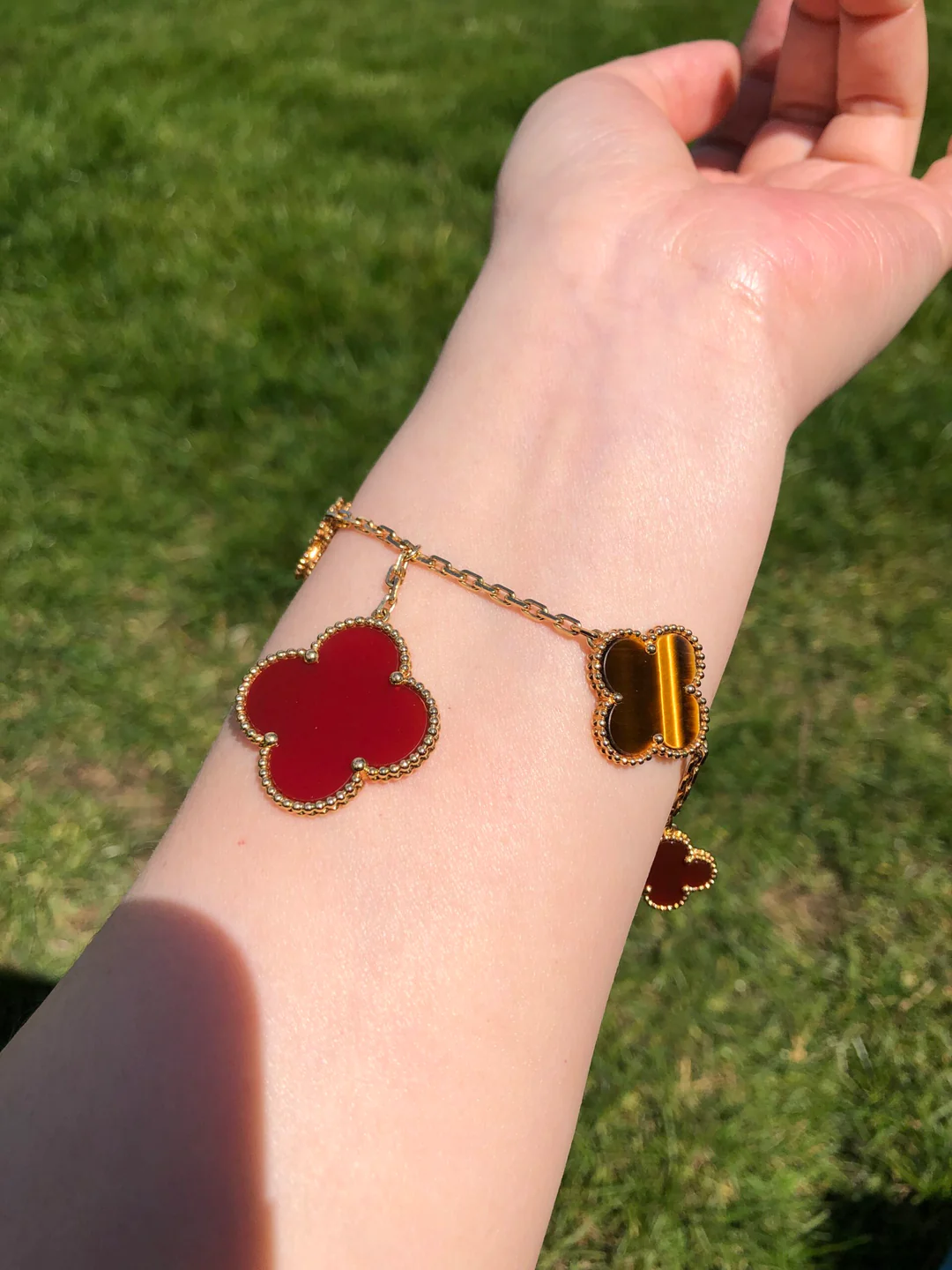 Chaque motif est réalisé dans une taille distincte, créant un équilibre gracieux entre délicatesse et présence. Cette variation apporte un rythme visuel au bracelet, permettant à chaque motif de briller à sa manière unique.