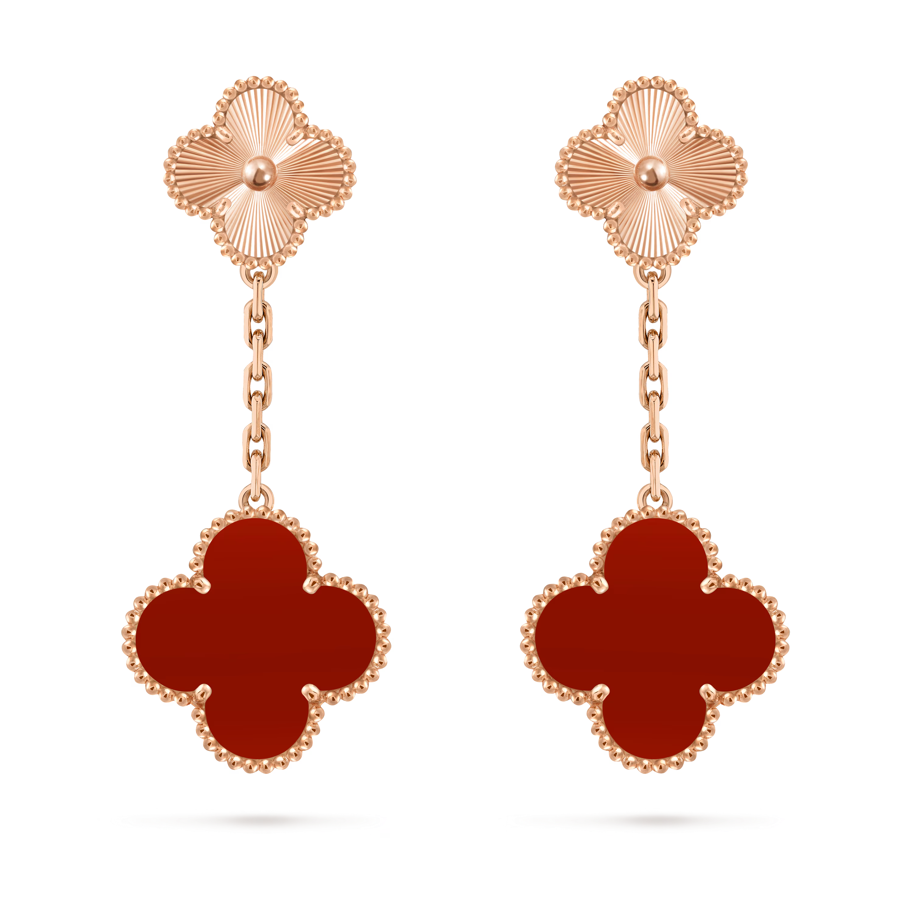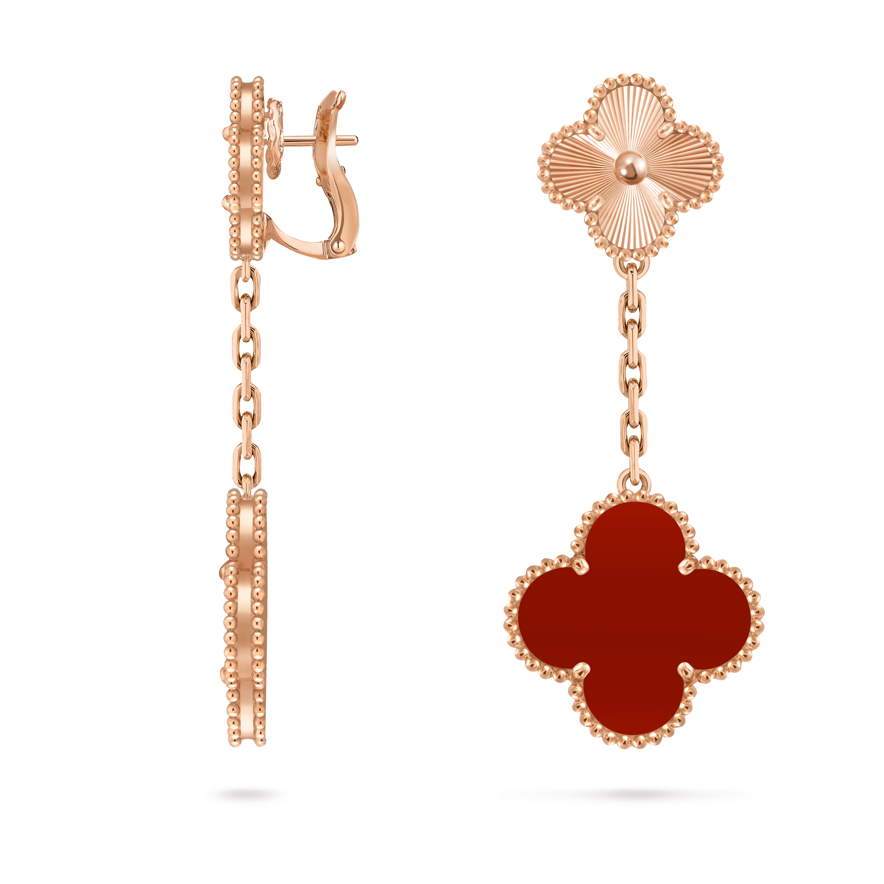 Van Cleef & Arpels — Boucles d’oreilles Magic Alhambra, 2 motifs – Or rose 18 carats & Cornaline