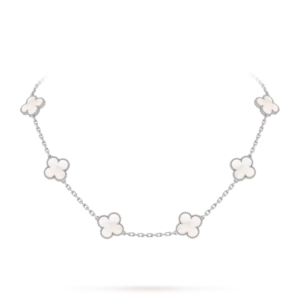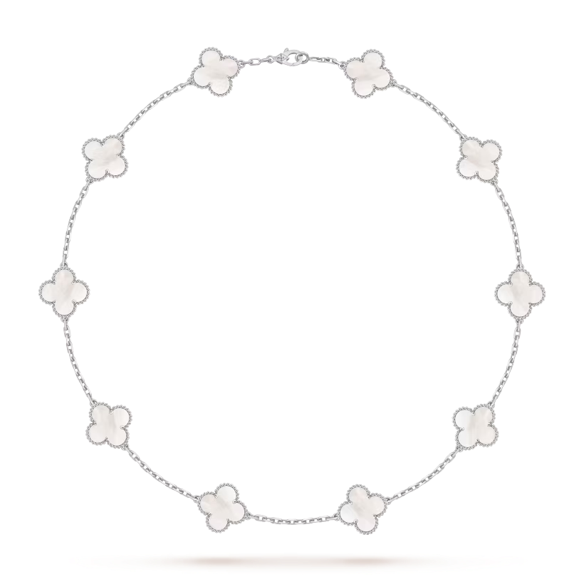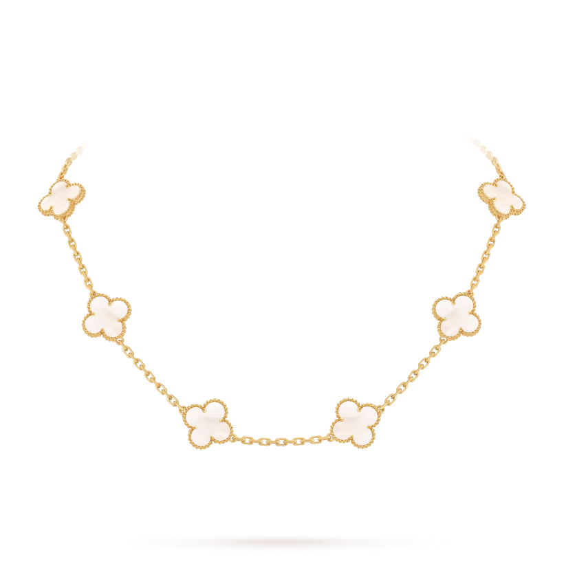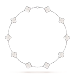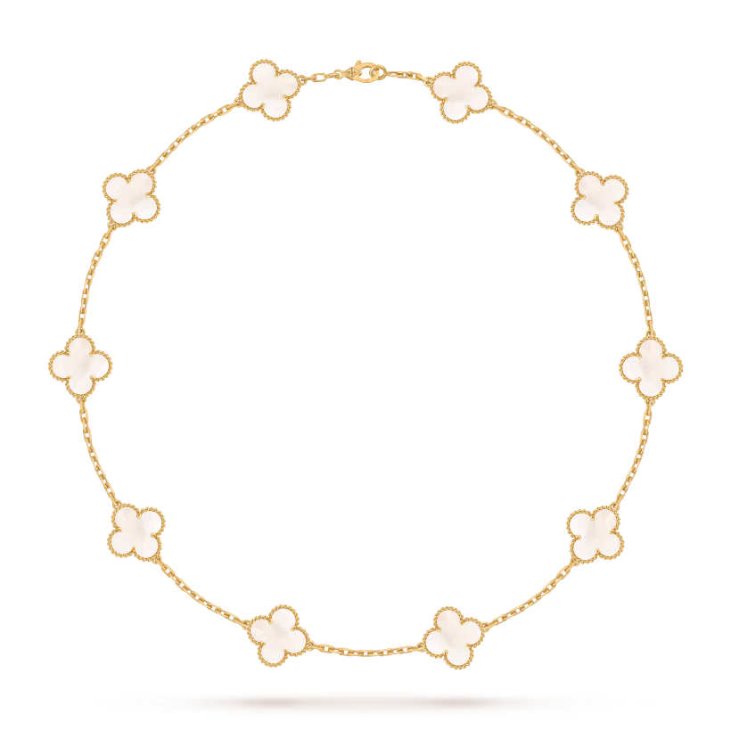 Le collier Vintage Alhambra à dix motifs est une expression intemporelle d’élégance et de maîtrise joaillière. Son design symbolique et son raffinement en font une création précieuse et sophistiquée, destinée à enrichir toute collection de joaillerie.
