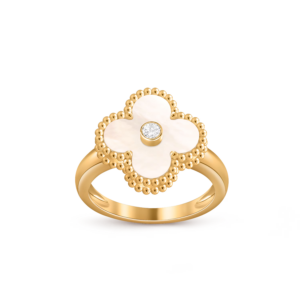 Réalisée en or jaune 18 carats, la bague met en valeur le motif Alhambra signature, sublimé par des contours polis à la main et une finition éclatante. Sertie de nacre lumineuse ou d’autres pierres précieuses, elle offre une alliance captivante d’élégance et de créativité. Son design sculptural crée un effet visuel saisissant, faisant de cette bague une véritable pièce de caractère destinée aux personnalités audacieuses et raffinées.