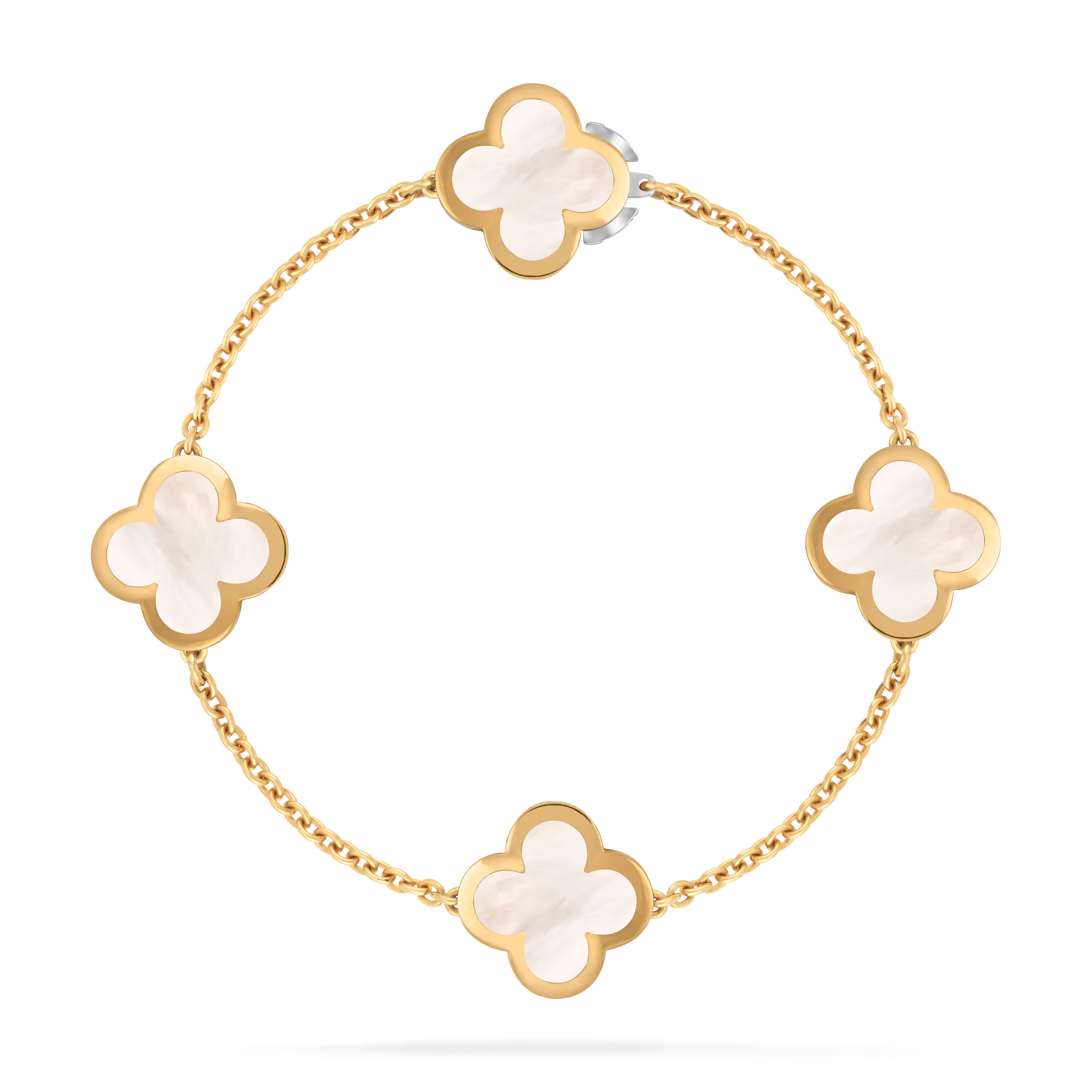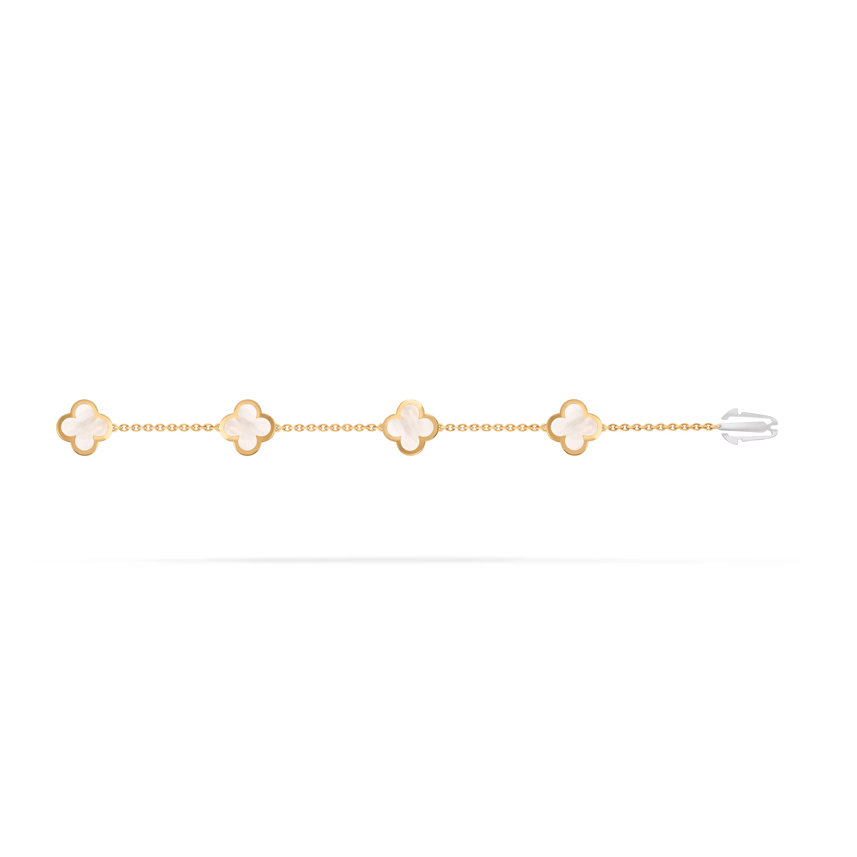 Ce bracelet présente quatre motifs Pure Alhambra, espacés uniformément le long du poignet pour créer une symétrie parfaite. Le design épuré met en avant la pureté des formes, permettant à l’iconique silhouette de se démarquer avec assurance et sobriété.
