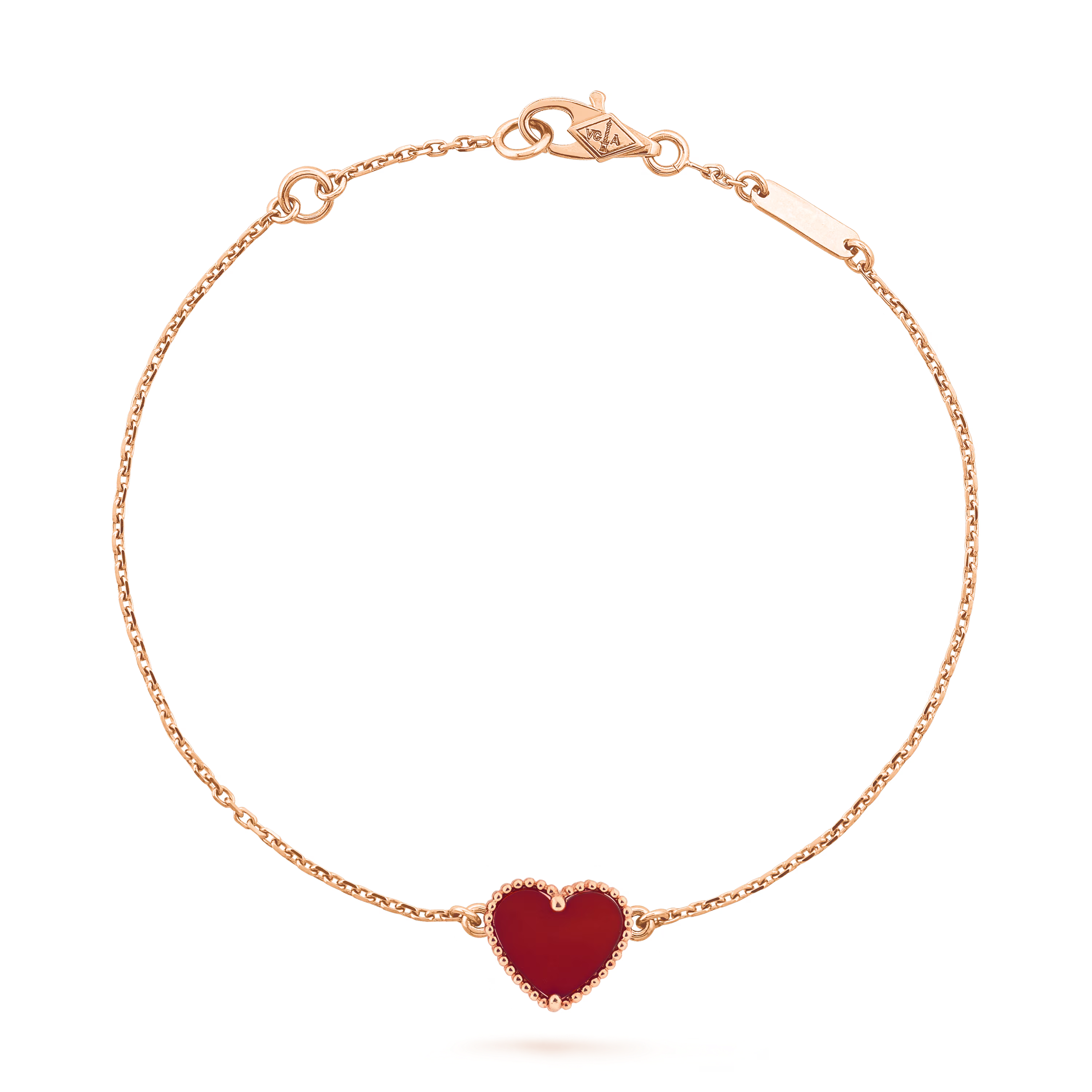 Ce bracelet se distingue par de raffinés motifs en forme de cœur, harmonieusement disposés le long de la chaîne. La silhouette douce de chaque cœur crée un rythme féminin et équilibré au poignet, offrant une expression à la fois subtile et évocatrice.