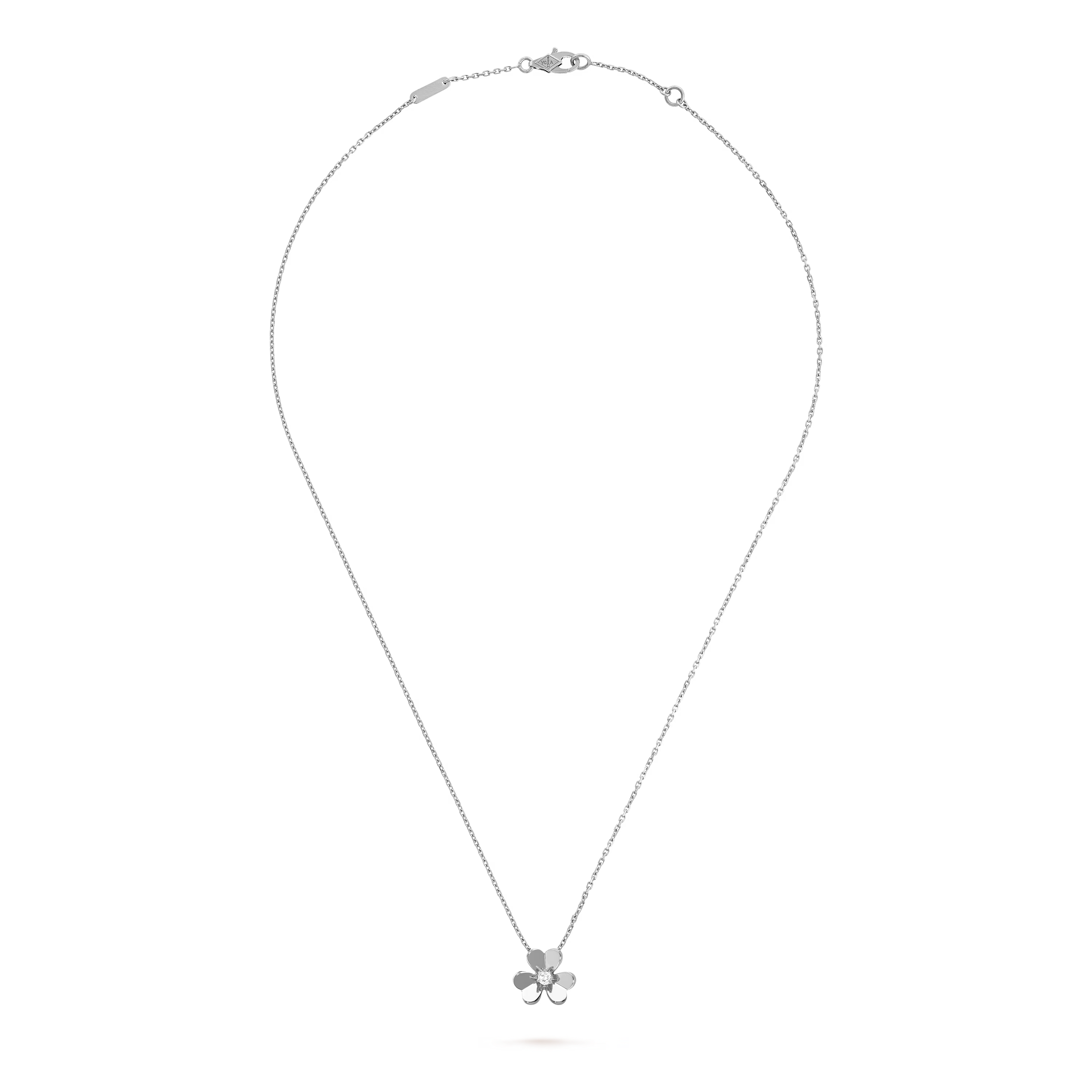 Un Rayonnement Délicat en Fleur Le pendentif Frivole, modèle mini, capture l’essence gracieuse d’une fleur pleinement épanouie. Réalisé avec légèreté et raffinement, cette création lumineuse reflète l’interprétation poétique de la Maison de la délicate beauté de la nature.