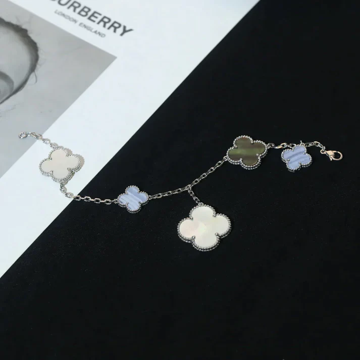 Chaque motif est réalisé dans une taille distincte, créant un équilibre gracieux entre délicatesse et présence. Cette variation apporte un rythme visuel au bracelet, permettant à chaque motif de briller à sa manière unique.