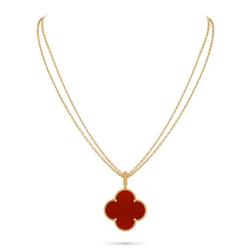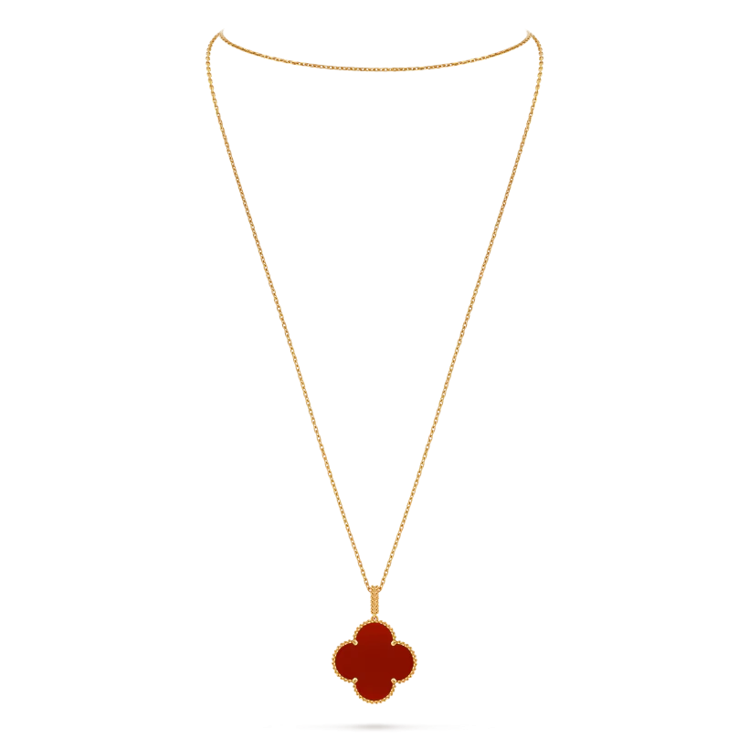 Le sautoir Magic Alhambra à un motif associe une symbolique forte à une élégance contemporaine. Son design audacieux et gracieux en fait une création intemporelle et porteuse de sens, destinée à enrichir toute collection de joaillerie.