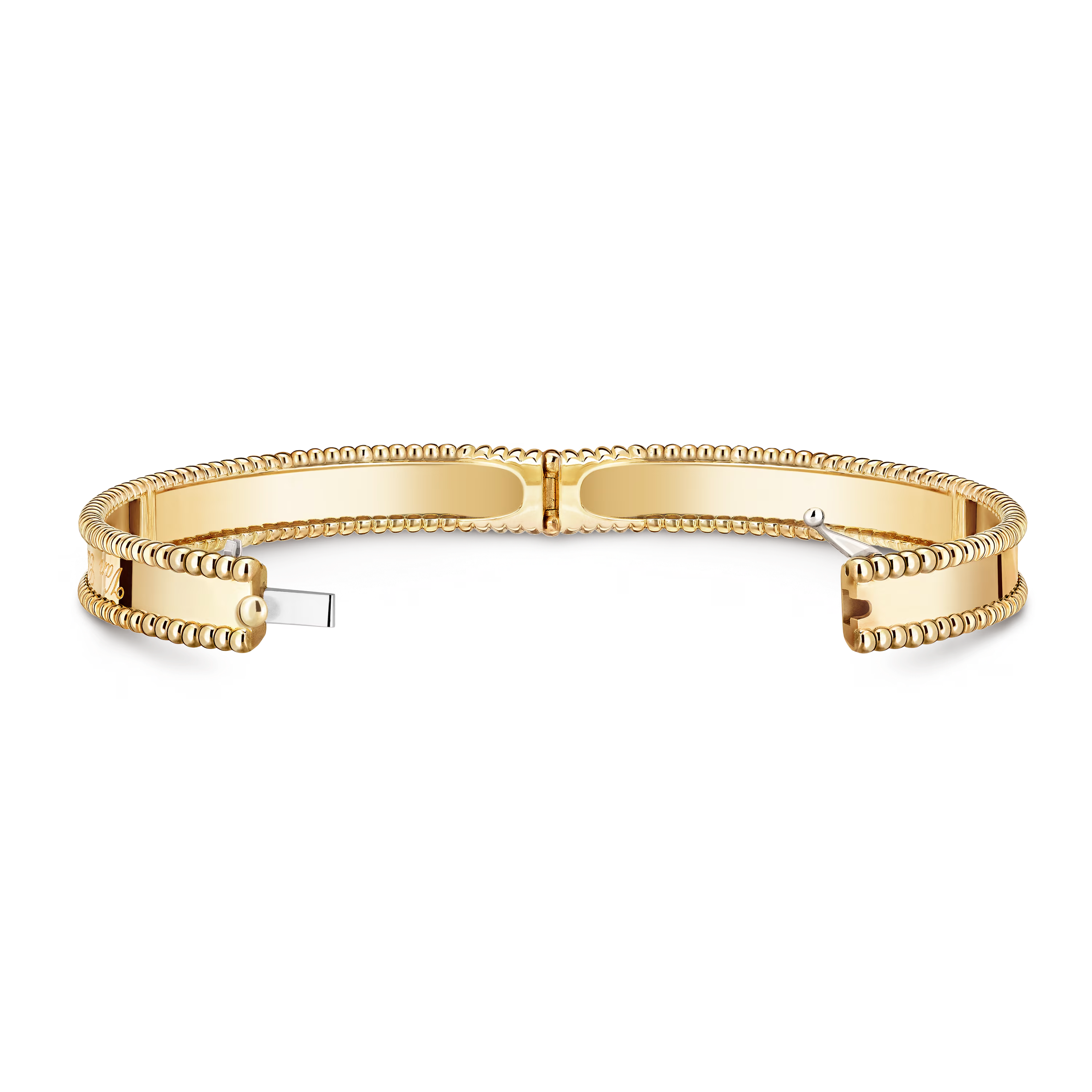 Chaque perle est réalisée avec un soin remarquable, témoignant de l’expertise durable de la Maison en haute joaillerie. Les contours lisses du bracelet, sa construction homogène et son polissage impeccable mettent en valeur l’artisanat derrière la collection Perlée Signature.