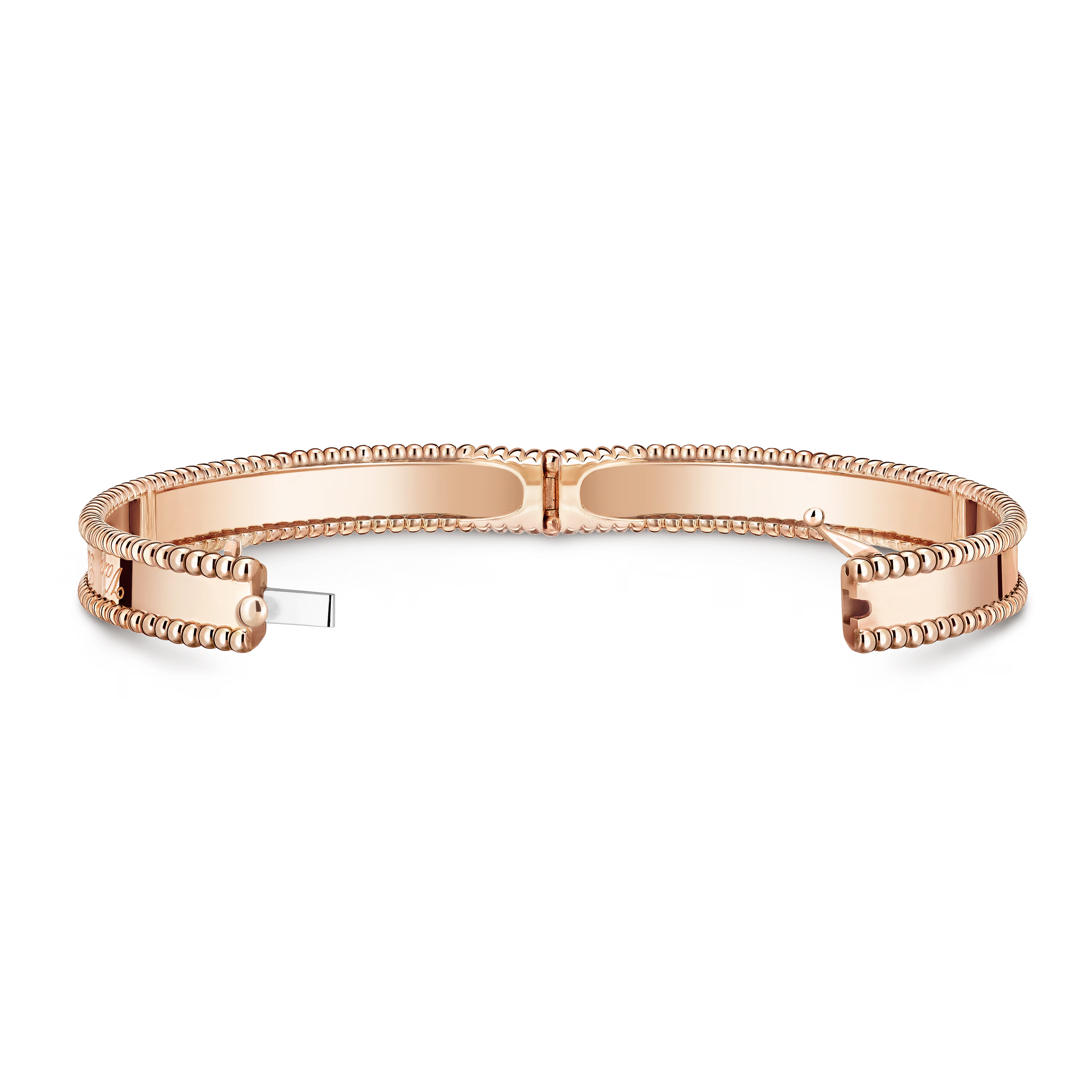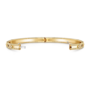 Le design homogène du bracelet met en valeur la précision et la maîtrise derrière l’art Perlée. Chaque perle s’aligne avec une continuité parfaite, illustrant l’engagement de Van Cleef & Arpels pour l’excellence artisanale et l’élégance intemporelle.