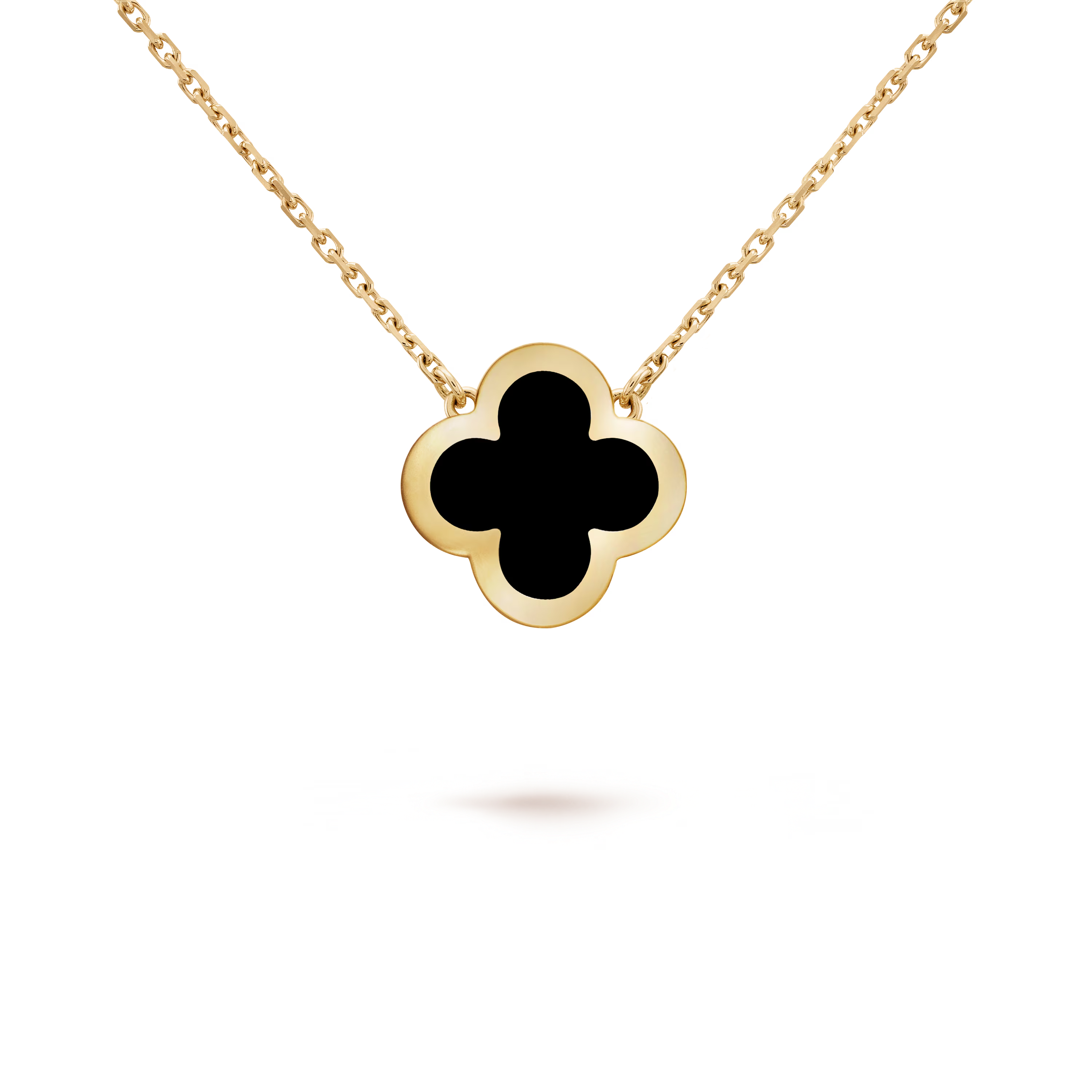 Saisissant, élégant et résolument moderne, le pendentif Pure Alhambra unit le design emblématique du trèfle de Van Cleef & Arpels à la beauté profonde et polie de l’onyx. Réalisé en or jaune 18 carats éclatant, ce pendentif reflète harmonie, force et l’approche raffinée de la Maison pour un luxe discret.
