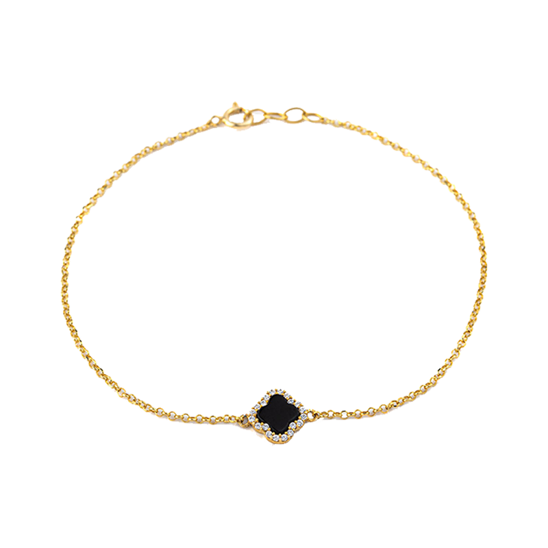Présentant des motifs de trèfle finement façonnés, disposés le long d’une chaîne élancée, le bracelet crée un rythme visuel tout en douceur. Chaque motif se révèle tel un discret porte-bonheur, apportant un mouvement subtil à chaque geste.