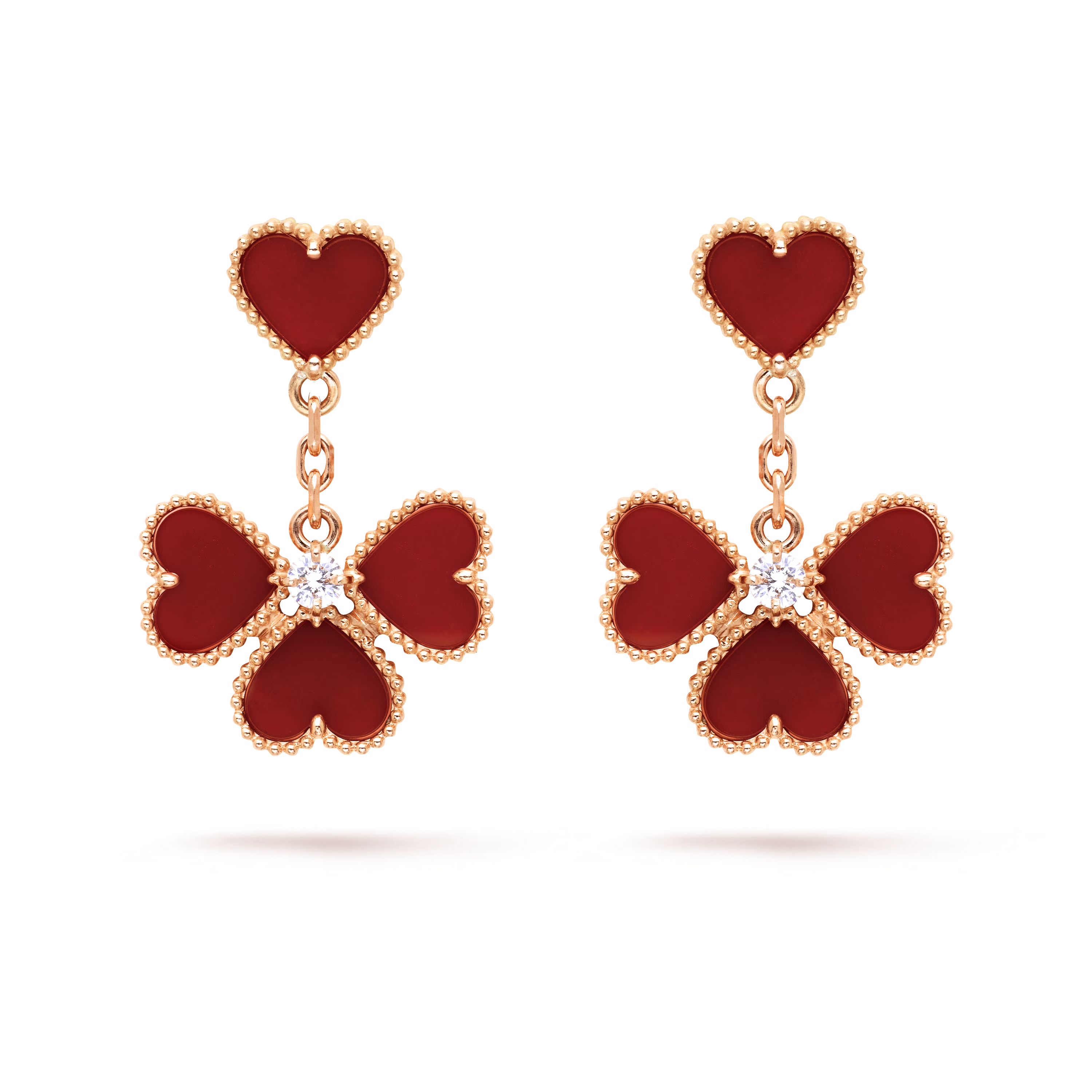 Douces, féminines et empreintes de chaleur poétique, les boucles d’oreilles Sweet Hearts incarnent l’élégance tendre qui caractérise les créations les plus appréciées de la Maison. Chaque boucle présente un motif cœur délicatement sculpté — symbole éternel d’affection — réalisé avec l’équilibre raffiné et l’éclat subtil propres à Van Cleef & Arpels.