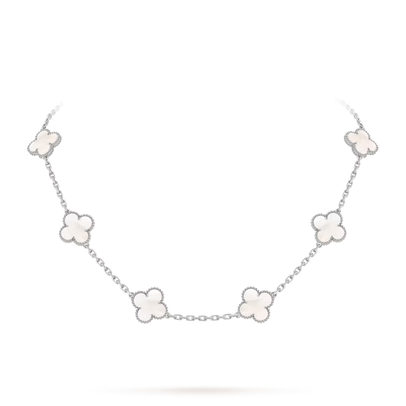 Le collier Vintage Alhambra à dix motifs est une expression intemporelle d’élégance et de maîtrise joaillière. Son design symbolique et son raffinement en font une création précieuse et sophistiquée, destinée à enrichir toute collection de joaillerie.