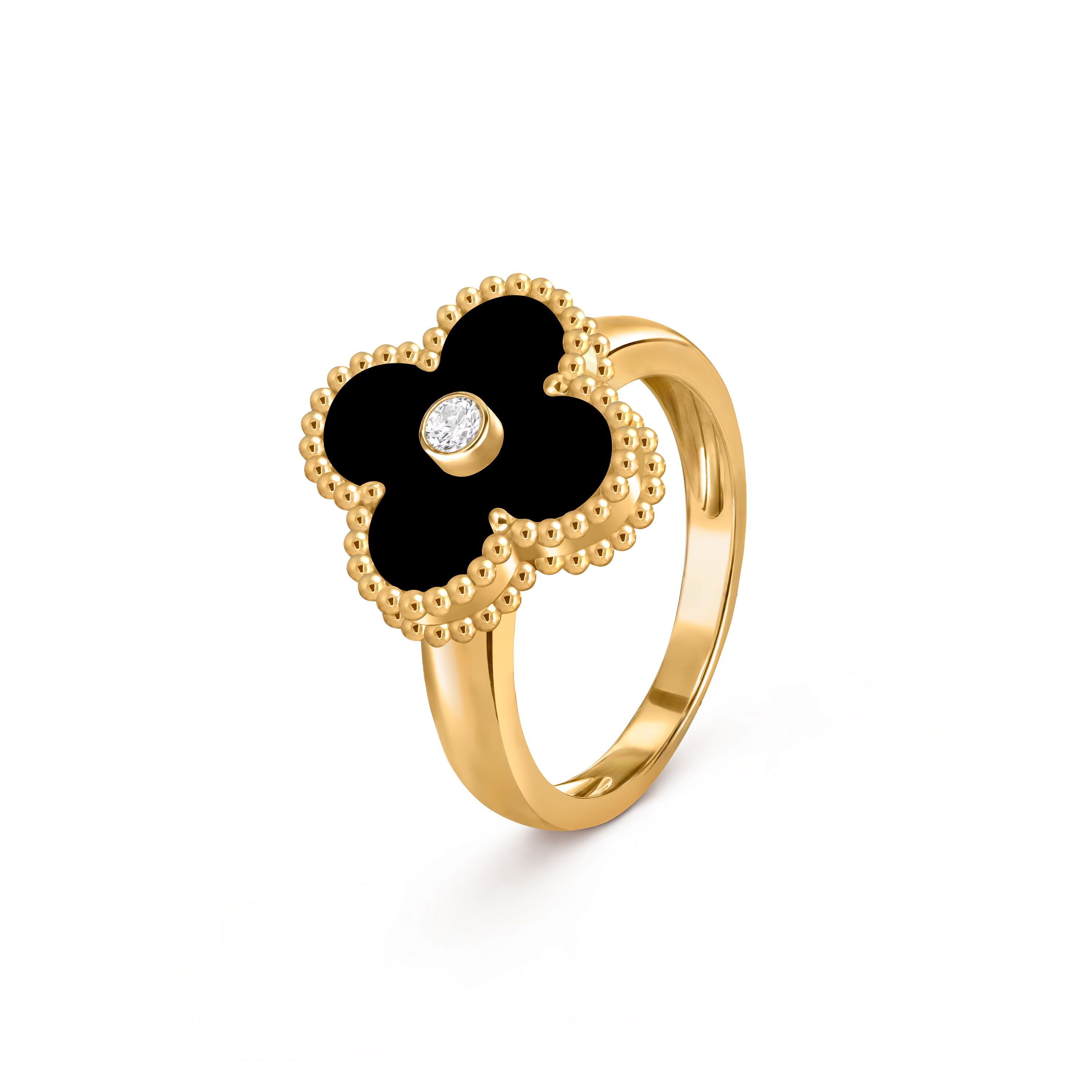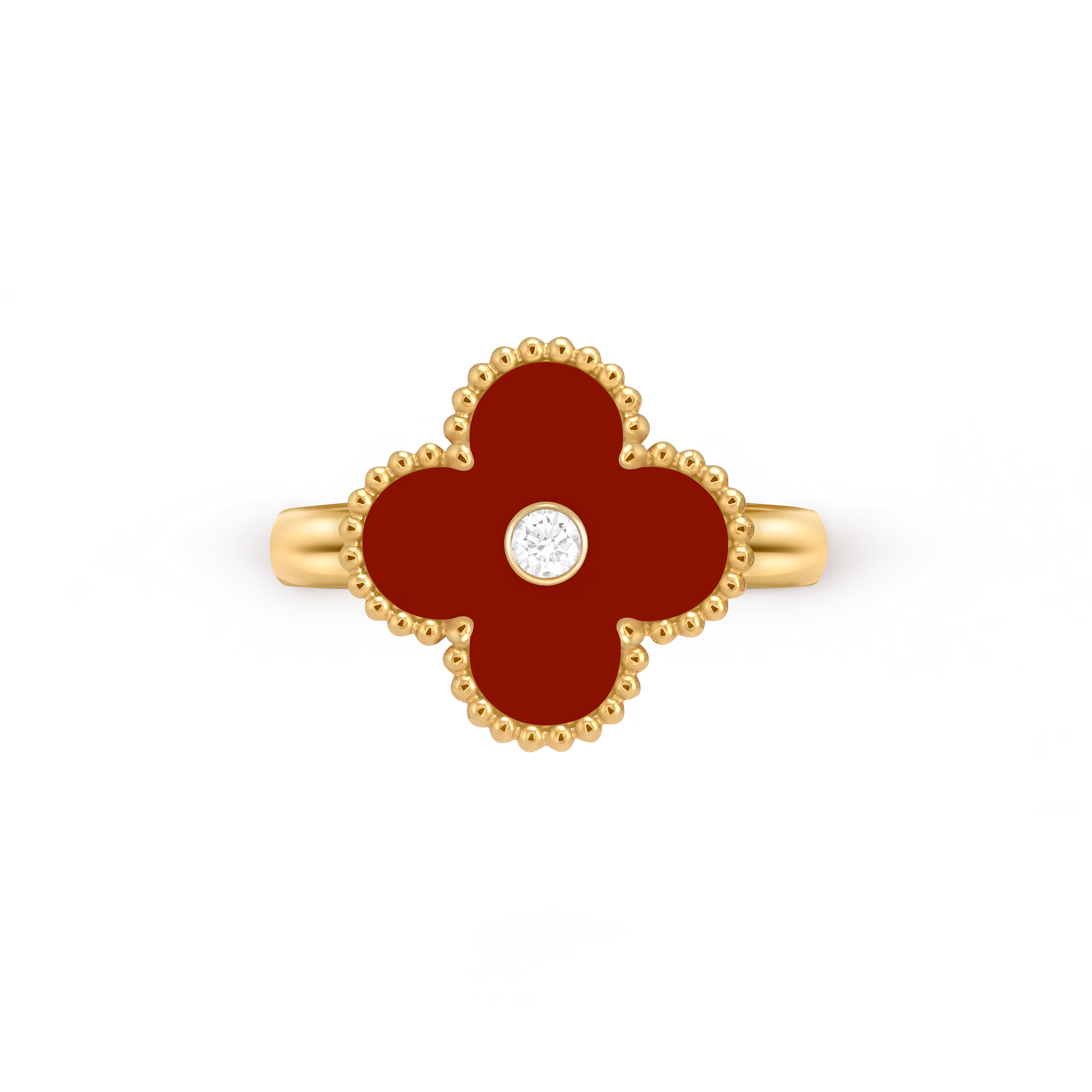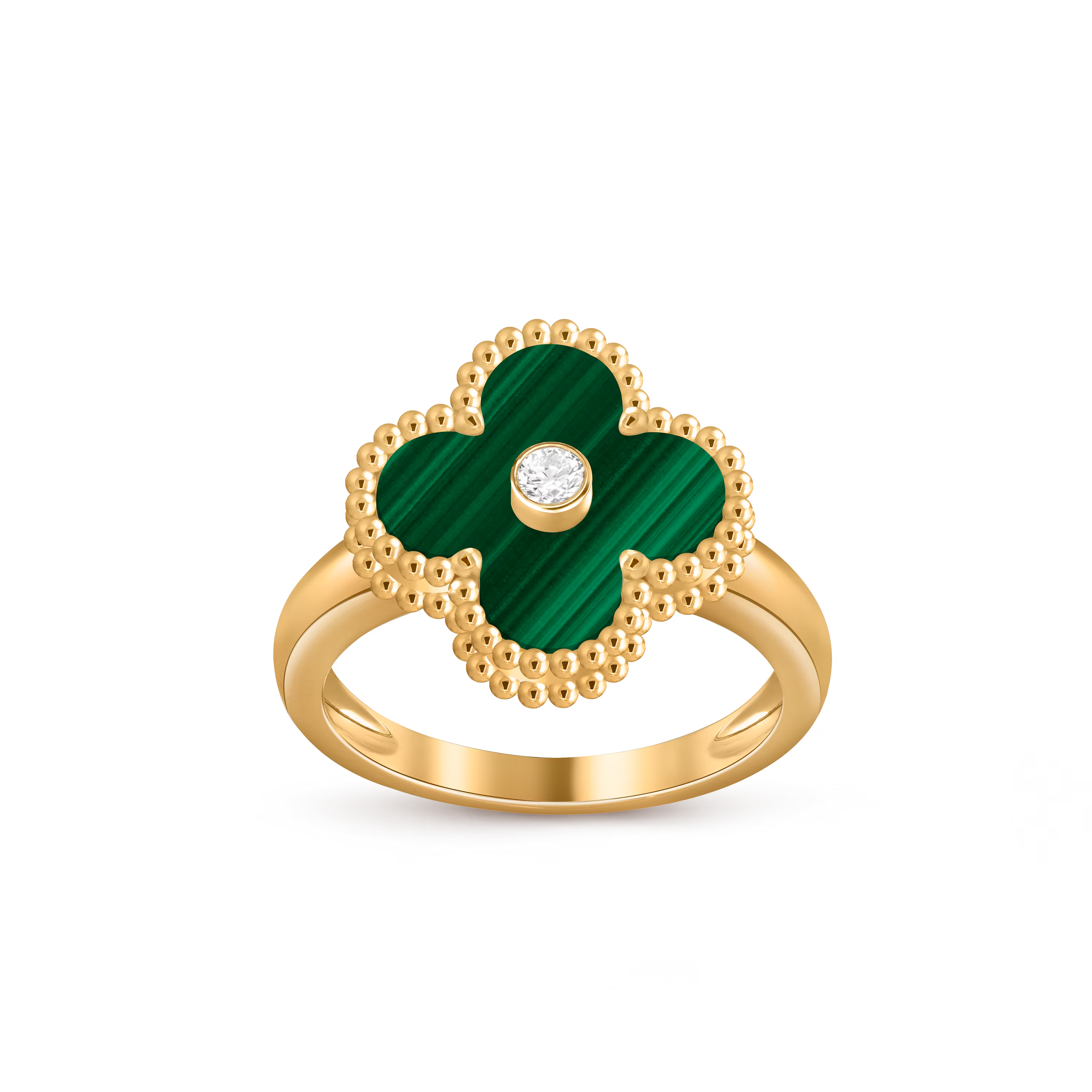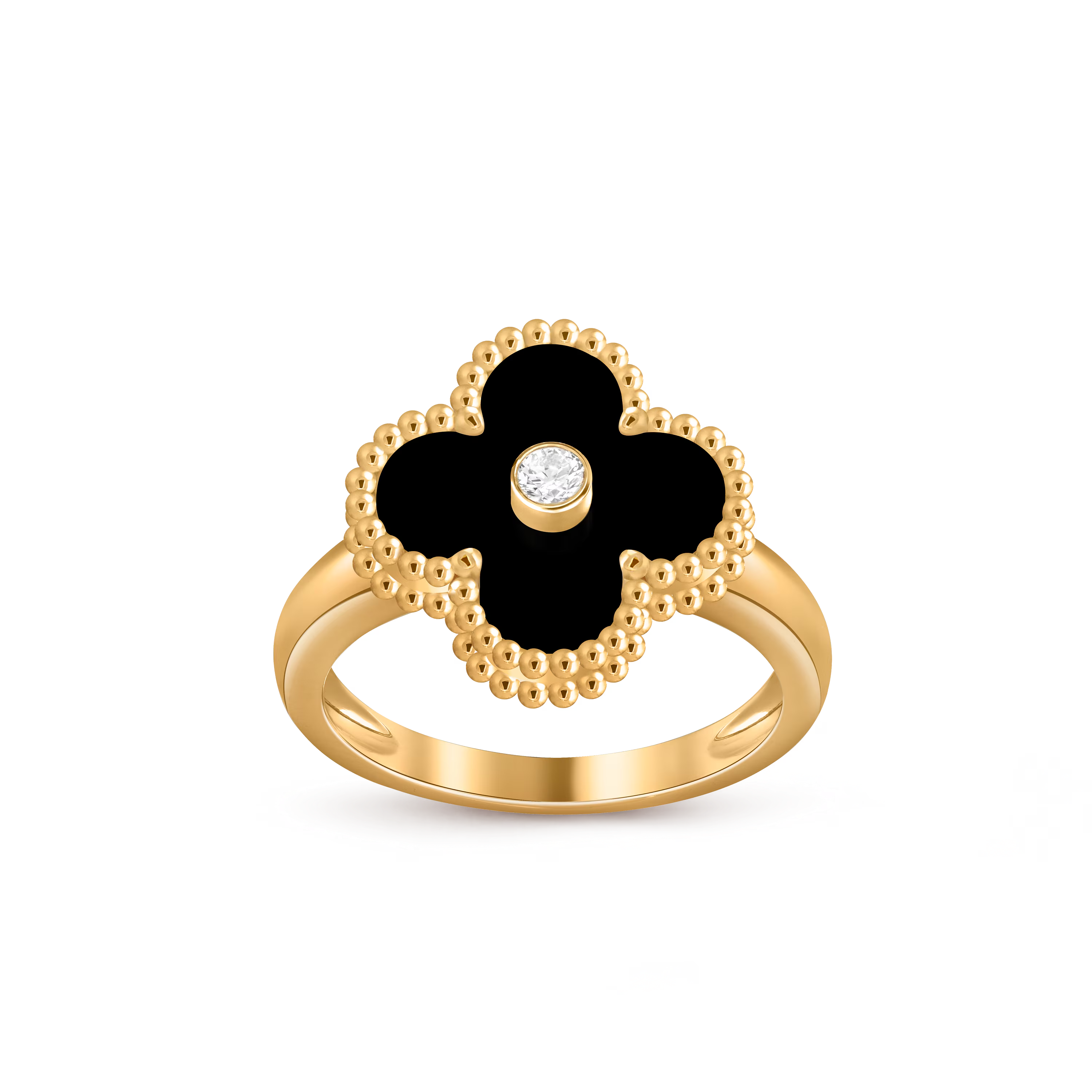 Chaque bague présente le motif Alhambra classique, aux contours polis à la main, captant la lumière avec finesse et apportant un éclat subtil et précieux. Légère et polyvalente, elle peut être portée seule pour une élégance discrète ou associée à d’autres créations Alhambra pour un porté harmonieux et superposé.